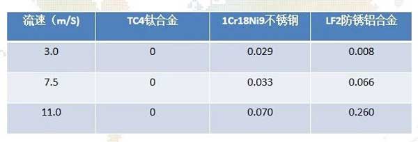 海水耐蝕性能(mm/a)數據的比較表